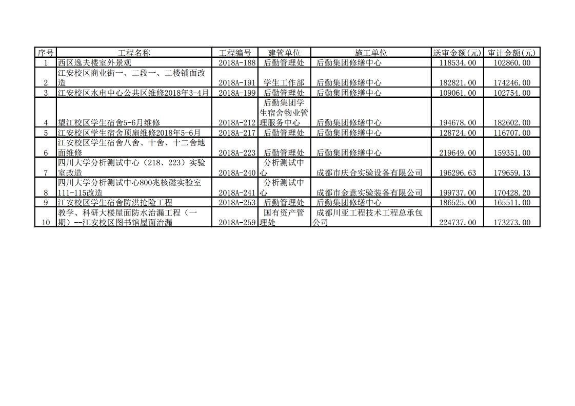 修缮工程项目造价审计结果公示(2018-012)