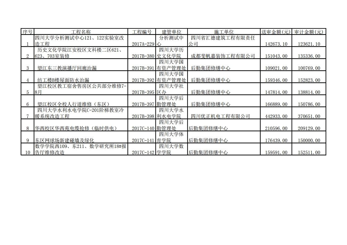 修缮工程项目造价审计结果公示(2018-007)