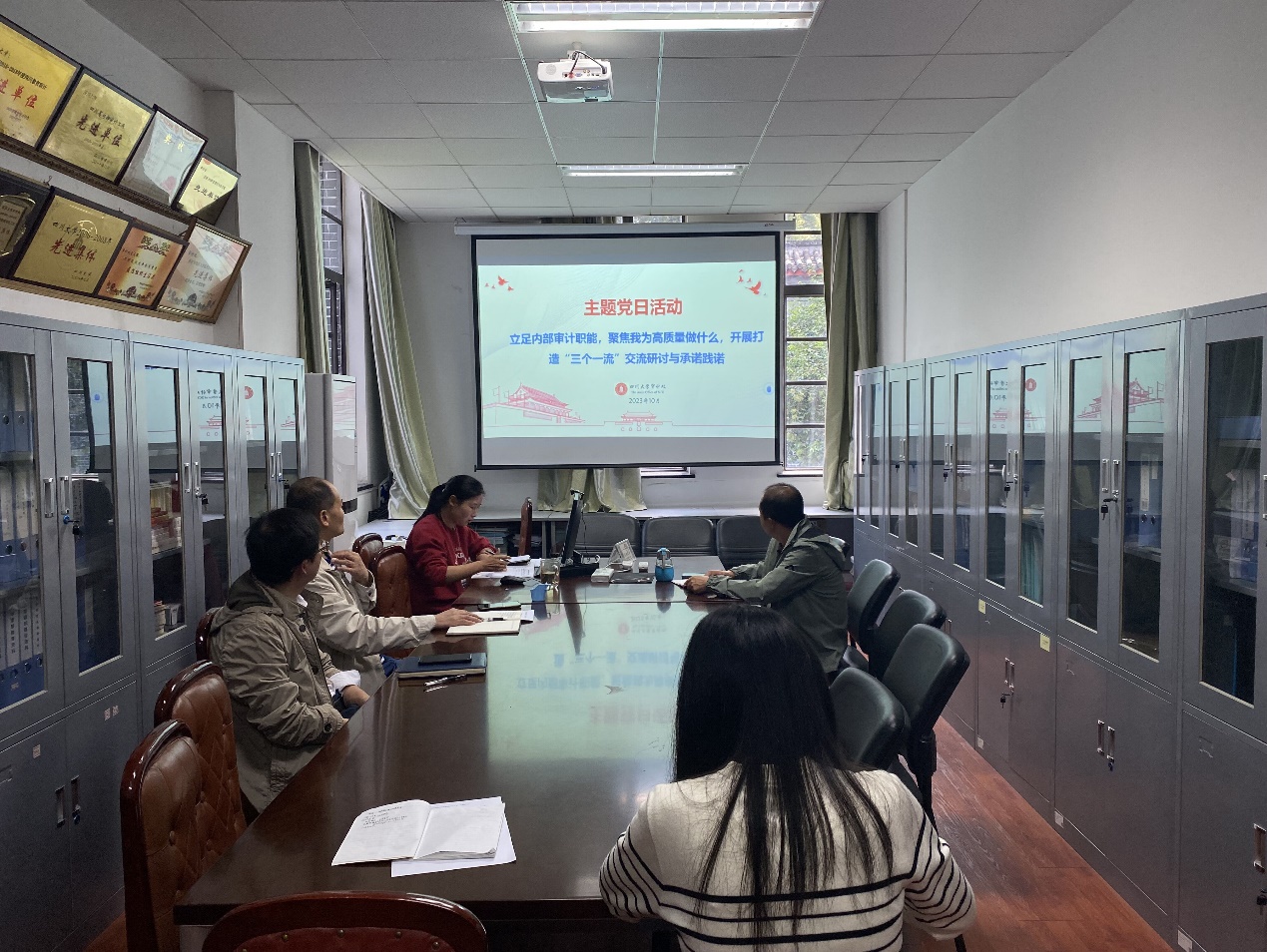 2023年10月23日下午,审计处党支部组织开展“我为高质量做什么”主题党日活动暨全力打造“三个一流”学习研讨。会上传达了机关党委相关工作通知和要求,组织学习了《中共yl23411集团官网委员会关于加快推进学校高质量发展助力教育强国建设的决定》,进一步深刻领会了学校2023年下半年新学期工作布置会精神。