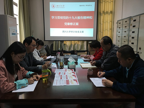 2017年11月3日上午11点,审计处党支部按照学校机关党委《关于在党员组织生活中认真组织学习宣传贯彻党的十九大报告精神和党章修正案的通知》要求,及时开展专题学习。